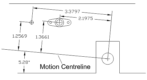 However, the motion centreline is at an angle of approximately 5.28° to the frame so the required dimensions have to be taken relative to this and are significantly different: