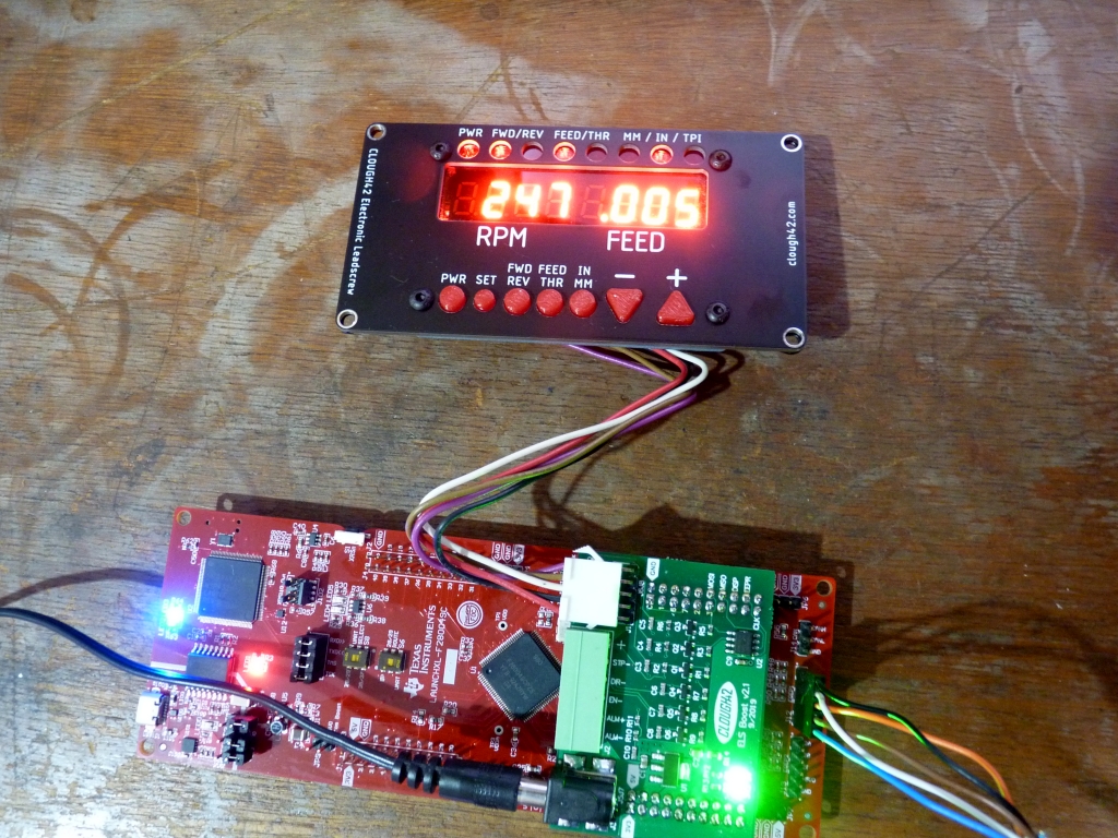 I think I will wire it all up on the bench first to check that everything works but I need to order some connectors before I can do that. 29/07/2021 I thought I would have a play with the software and try downloading it onto the microprocessor board. I made up a temporary lead to connect the display board to the microprocessor board and then downloaded the required software to flash the ELS software onto the mcu board. The required software is called Code Composer Studio and is downloaded from the Texas Instruments website. You need to make sure that you have version 9 which was used to create the ELS software. There is now a version 10 but the ELS software will not work with that at the moment. James has an excellent video about how to download all the software and use it on his Youtube channel. The ELS software has two versions - A 'Debug' version and a 'Release' version. The Debug version runs slowly so that you can hopefully find any problems with it (if you know what you are doing, which I don't!) and the Release version is the faster, trimmed down working version that is loaded permanently to the mcu board. The debug version is not flashed permanently onto the mcu board and is lost if you remove the power from the board. I managed to get the debug version to work fine but the Release version failed and not knowing anything about code I didn't know why. I did put a question on the Github page to see if anyone could help but I eventually got it to work by putting the software files into a different folder on the computer. I don't know why that solved the problem but it did which is all that matters! I could now flash the ELS software permanently onto the mcu board. When the board boots up it displays 'Clough42', then the release version of the software before finally going into operational mode which initialises at the fine feed mode.
